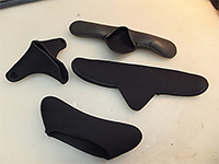 Neoprene crutch covers will provide extra protection against the forearm rubbing in the plastic cuff. This is especially useful during hot days where short or no sleeve clothing is worn. Our neoprene is 3mm thick can be easily removed for washing or when thicker outer clothing is worn during winter. The cover is also reversible as one side has a cloth like materials while the other side is of soft rubber. They also make the cuff fit more snuggly for user with a smaller diameter forearm. |