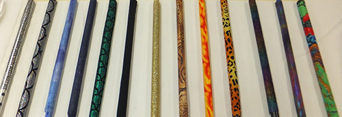SAMPLE COLOURS AND DESIGNS Since 1998, we have been providing “alternate” sleeves / accessories for all of our crutches and canes. They are made of Lycra and have patterns and colours. The intent was to give a change to the look of the crutches to compliment with clothing or something different for special occasions. The sleeve will also protect your crutches during rough activities. Finally, the sleeves will hide any damage or chips on the crutches. To install: disconnect the clip or push button between the 2 tubes and slide the sleeve in place. Cut off any excess length if required.