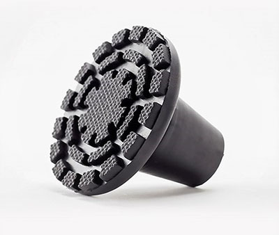 KLAUS is a high-quality rubber tip, formulated with the best natural rubber improved with other complements. It has a diameter of 7 cm and its base has an engraving specially designed for all surfaces both interior and exterior and different climates. It can also be used in beach sand, water and snow. With its design, there is an insertion in the outside of the neck that improves its flexion.