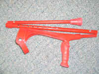 | Do you need folding crutches when you're away from home, but don't want to strap your old wooden crutches to your suitcase? Here is the answer: a lightweight aluminum forearm crutch which folds in 3 pieces, to a collapsed length of 53.5cm or 21.5 inches. The length between the hand grip and the cuff is 24.5cm or 9.5 inches. They are also handy for everyday use and at pools, gyms, cycling and other recreational activities. An internal elastic cord ensures you won't lose any of the three separate parts, and will prevent mix-ups in assembly. The length is adjustable from 100 to 123cm by pushing a button and sliding the lower tube in or out. With each crutch ordered, we also provide a strap in front of the elbow cuff using nylon straps and 2 snap fasteners. The sleek design of the Award crutch makes it a stylish and easy to carry item. The new anatomic soft rubber grips have replaced the hard round (ergonomic) grips with neoprene sleeves. The Award Crutch pictured sports a custom tip that you can upgrade to. $280.00 + Shipping, Handling and Taxes |